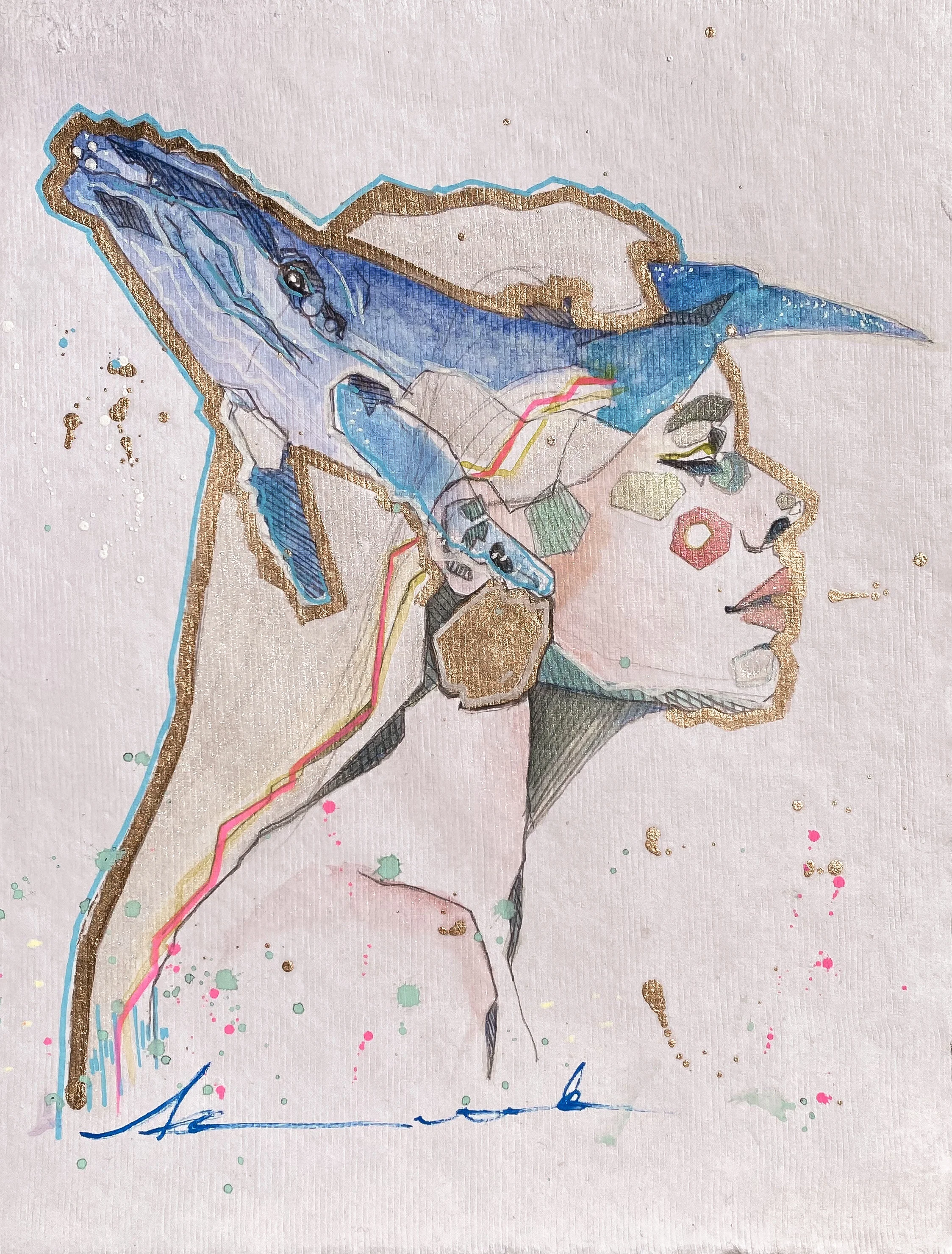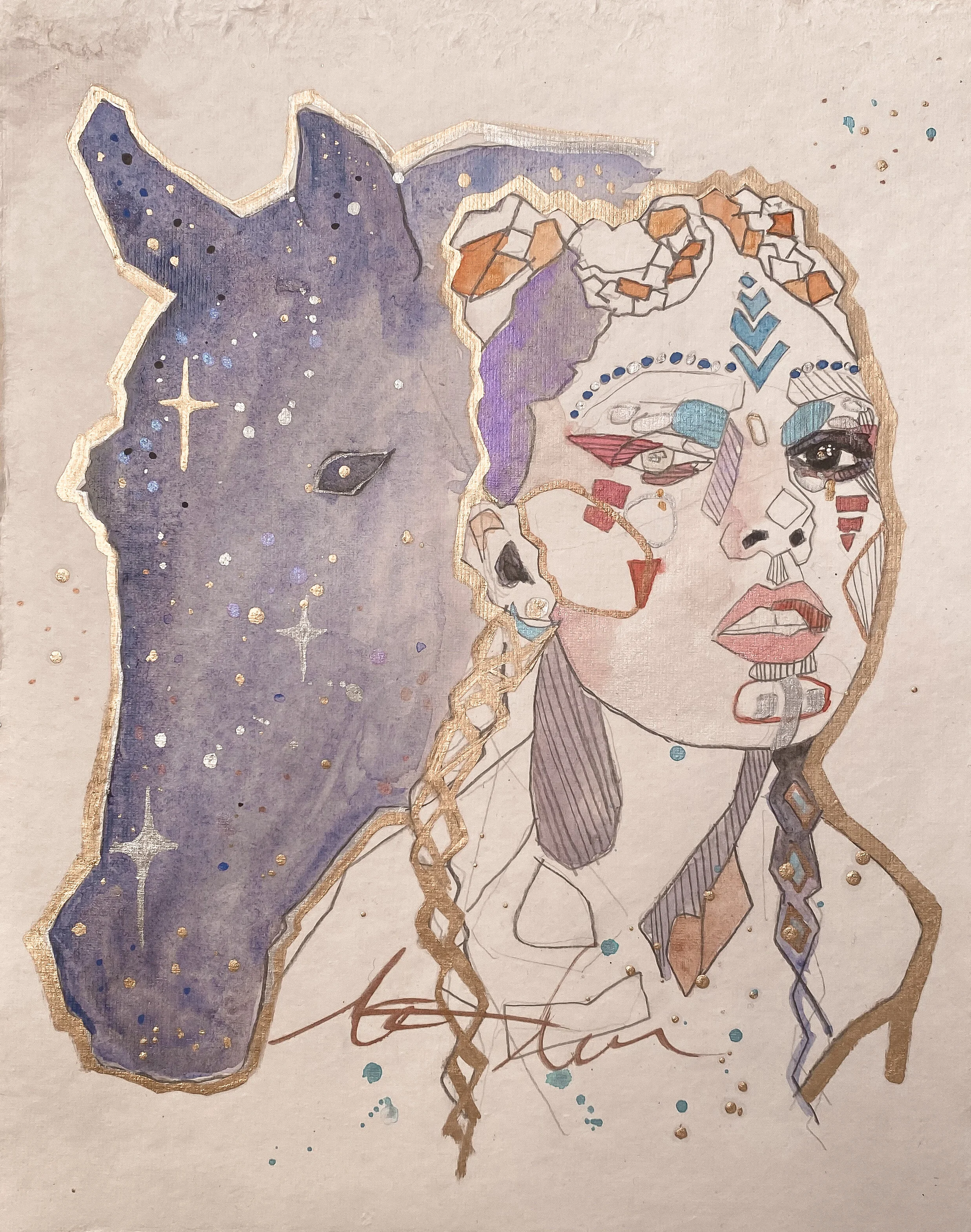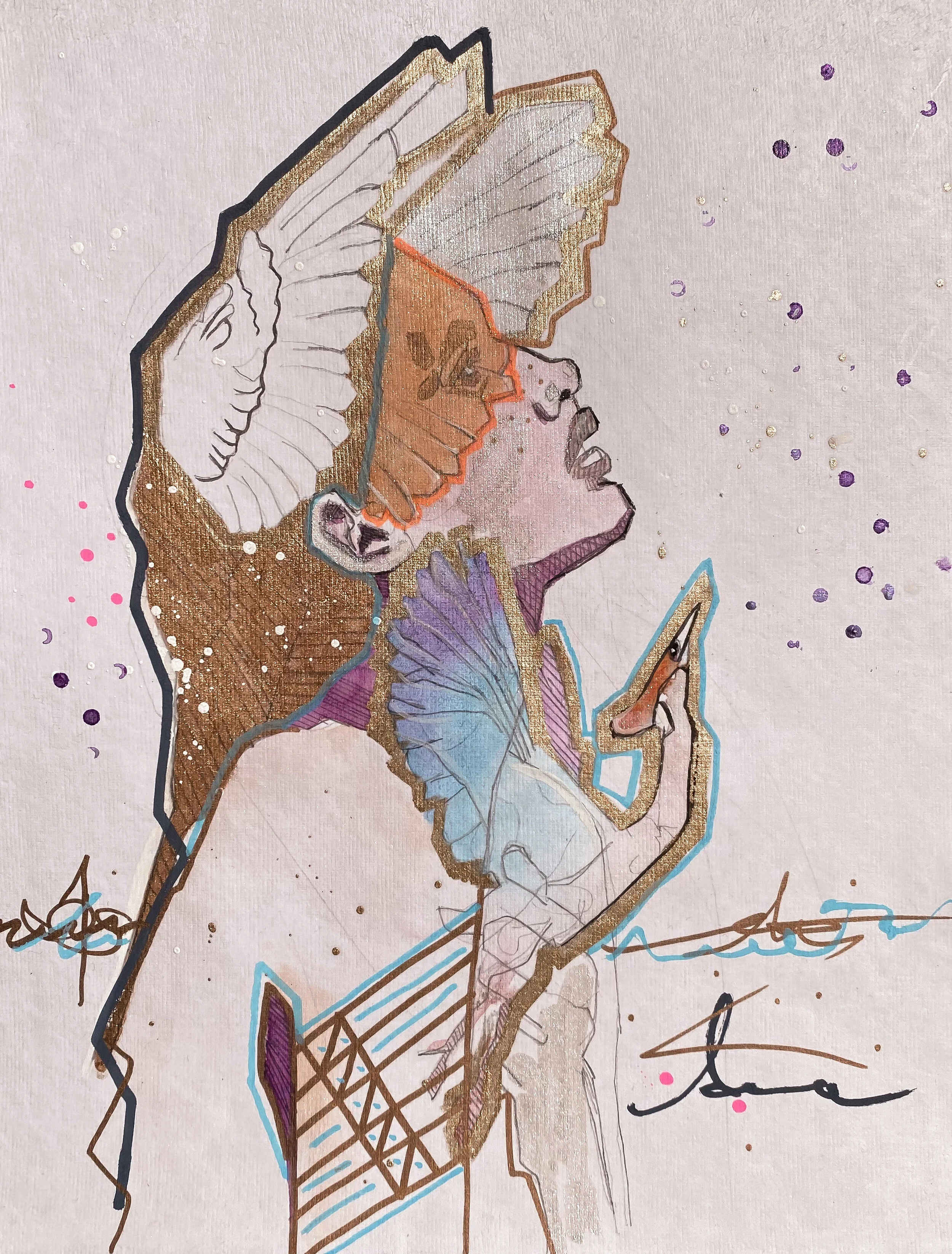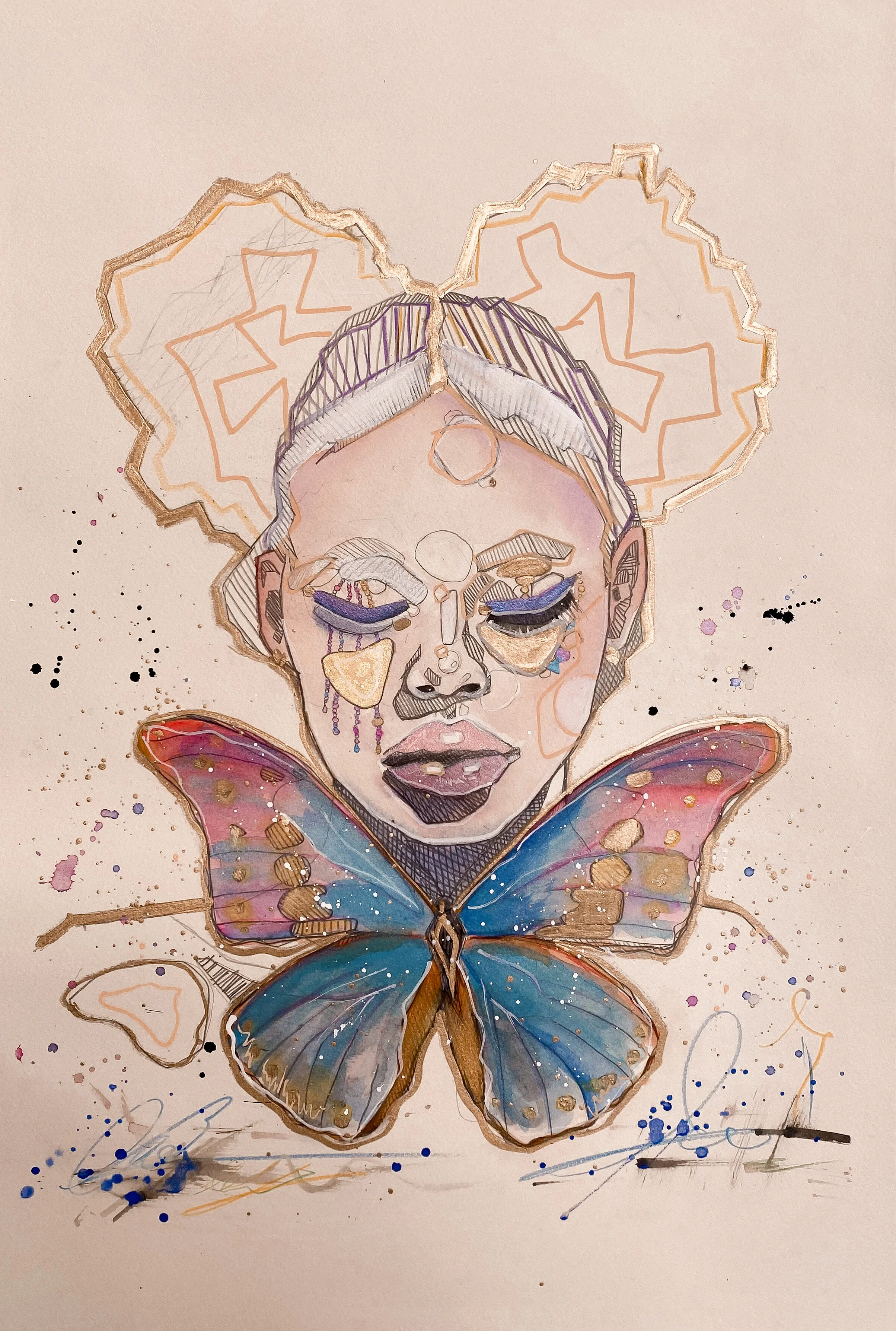Intuitive art is created through the subconscious practice of creativity. Activating the right hemisphere of the brain enables a flow state to channel this information through an intuitive creative art practice. Through mindfulness of meditation I sense into the energy surrounding you, through visions and feelings I create an original art piece that draws forth symbology that interprets you.