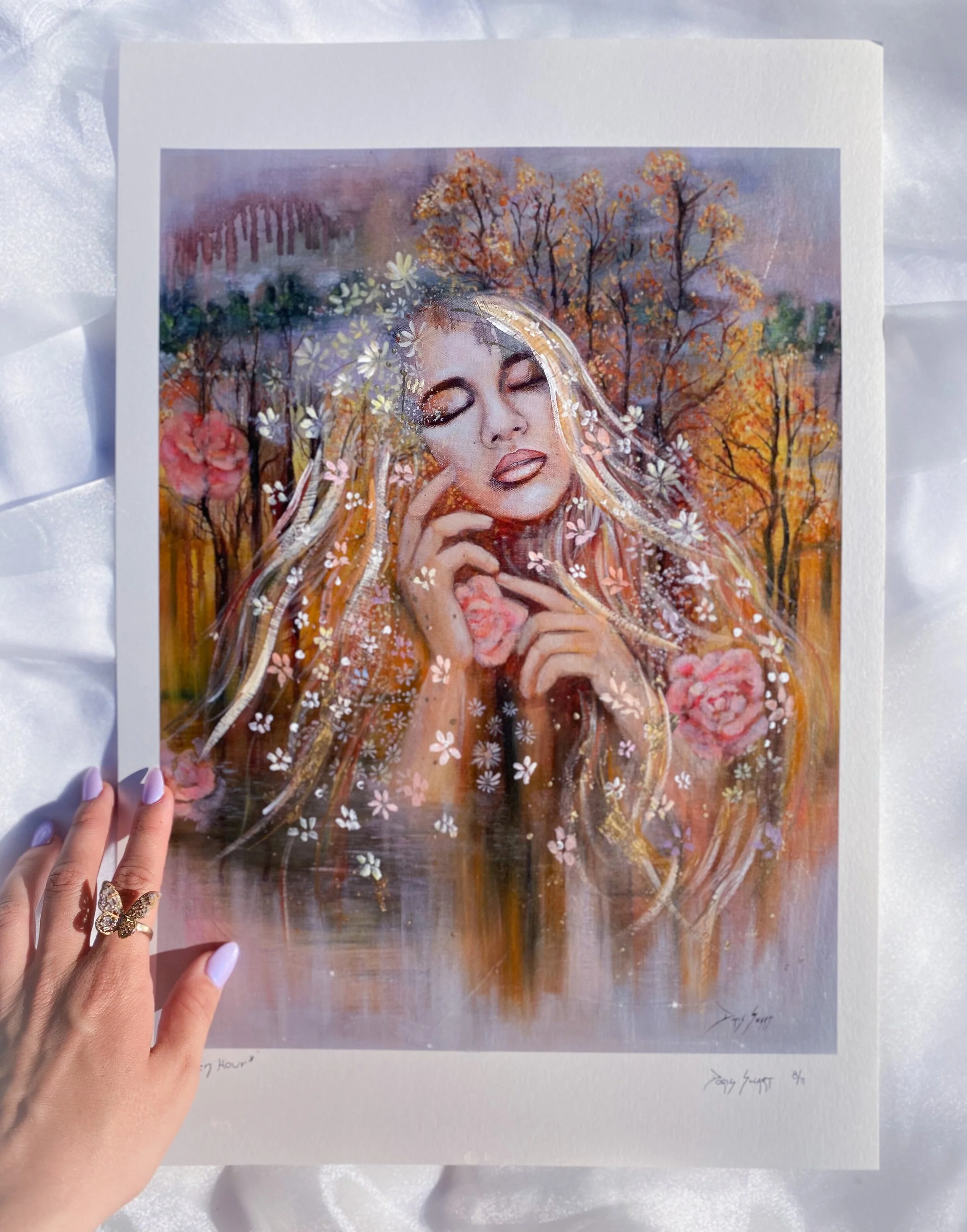 Only 11 will be printed, making them exclusive limited edition art pieces. Each A3+ print, hand embellished with rich paint texture, 24 karat gold leaf and metallic paints.